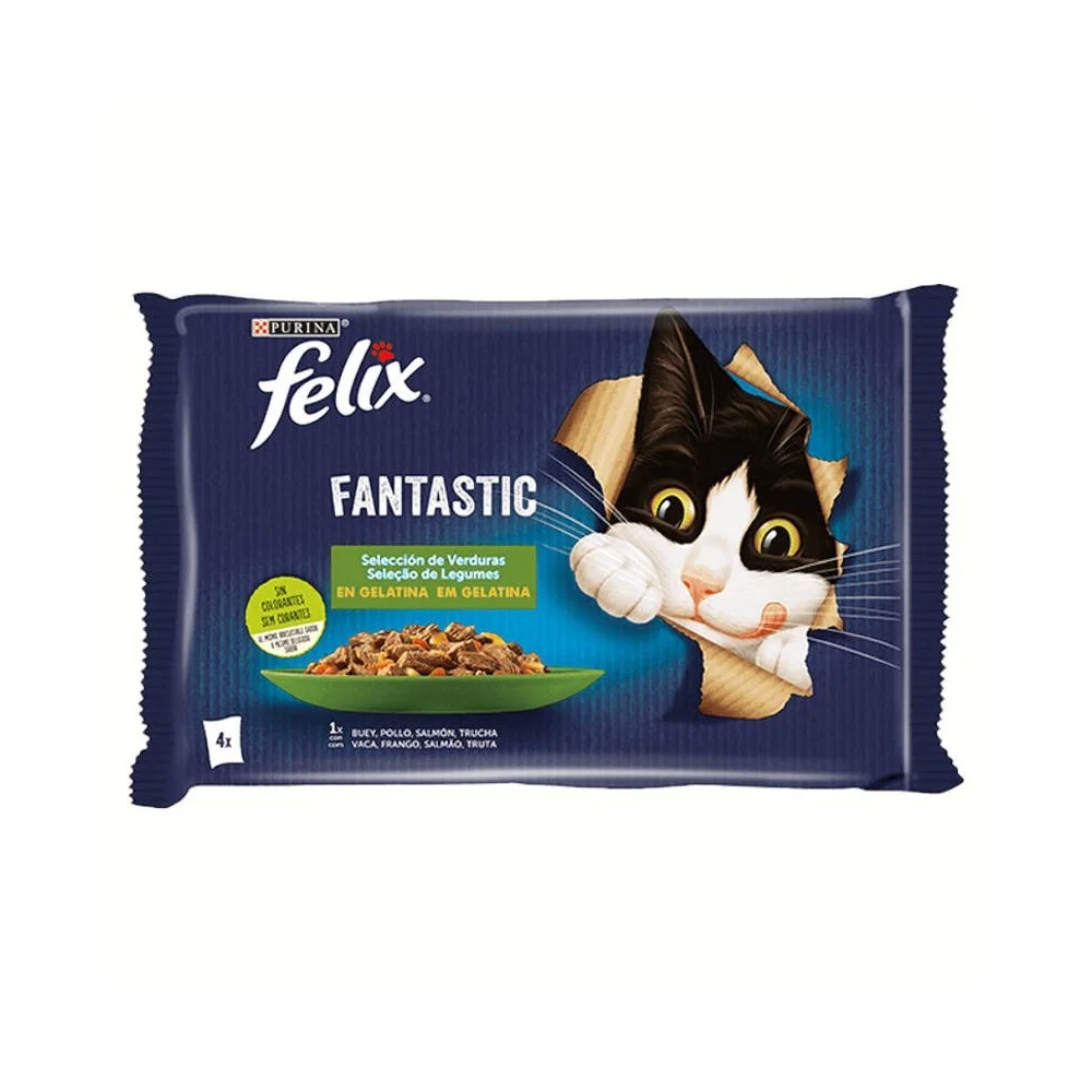 Offrez à votre chat adulte une expérience gustative irrésistible avec FELIX Fantastic Sélection de Légumes en Gelée, un aliment humide complet et équilibré conçu par PURINA, marque de référence en nutrition animale. Chaque recette est préparée avec de tendres morceaux savoureux, associés à une sélection de légumes soigneusement choisis, le tout délicatement nappé d’une gelée appétissante qui stimule l’appétit naturel des chats.