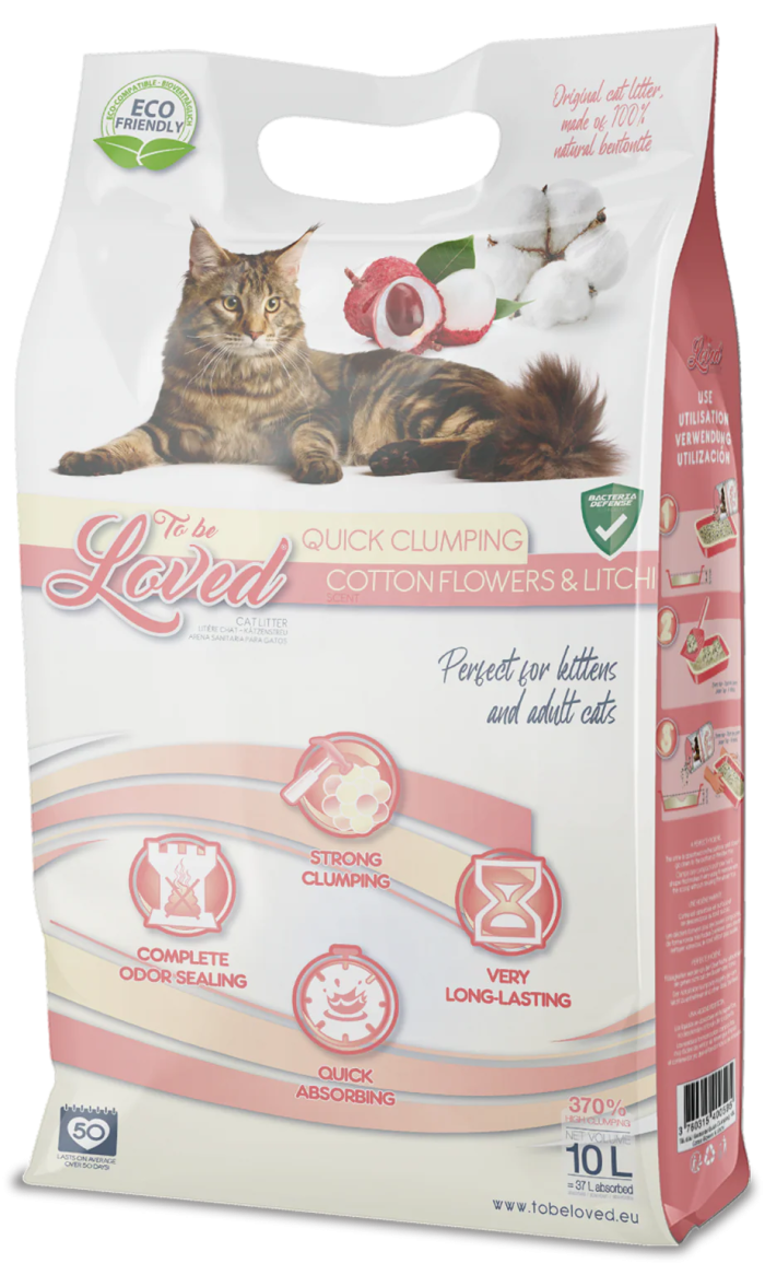 Découvrez le mélange parfait de douceur cotonneuse et de parfum fruité de litchi avec la litière pour chat Cotton Flowers & Lychee !