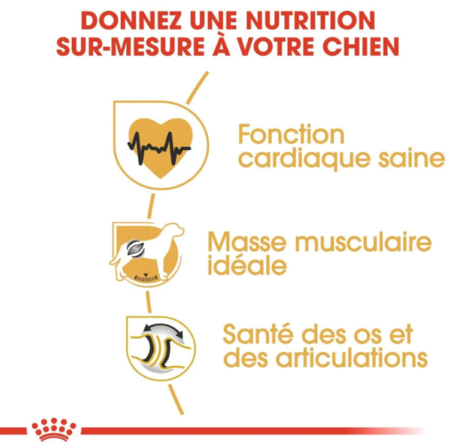 Masse musculaire idéaleROYAL CANIN® Rottweiler Adult contribue à maintenir la masse musculaire grâce à une teneur adaptée en protéine (26 %). Cette formule contient de la L-carnitine.