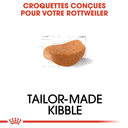 Croquette de conception exclusive : spécial mâchoire molossoïdeUne croquette exclusivement conçue pour faciliter la préhension et encourager la mastication chez le Rottweiler.