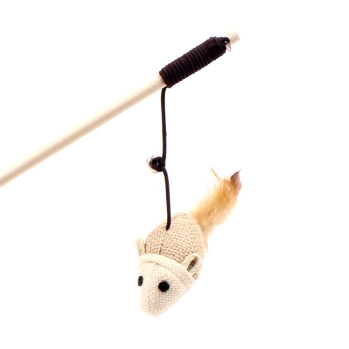 Tige Jouet pour chat Lin Souris Poteau en bois Tease Chat Bâton Chat Bâton Portable